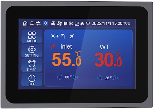 COP>5 με θερμοκρασία περιβάλλοντος +7°C και θερμοκρασία νερού 55°C.