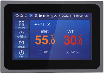 COP>5 με θερμοκρασία περιβάλλοντος +7°C και θερμοκρασία νερού 55°C.